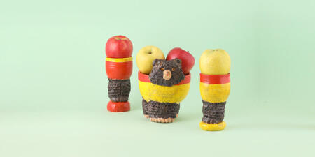 彩度の高い色彩で描かれる彼女の絵画には、クマの「ぬいぐるみ」のような可愛らしい生き物、カラフルなキノコなど空想世界のような不思議な風景が描かれています。しかしその細部には彼らの血肉が表現され、描かれるその世界はまさに私たちの生きる矛盾に溢れた世界と同じであると気づかされます。